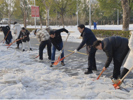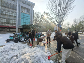 筑牢安全线,破冰除雪保障员工有序返校。冬雪是景,扫雪是情,为确保全院师生出行安全,2月23至26日,公司党委组织师生开展铲雪除冰清扫行动,为新学期师生安全出行“保驾护航”。老师和同学们不畏严寒,团结协作,拿起铁铲、推车热火朝天地清扫校内积雪,这忙中有序的身影成为冬日校园里一道道靓丽的风景线,同时也为同学们展现了一节节生动形象的劳动课。