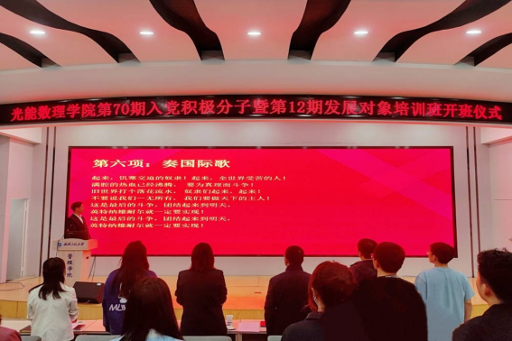 在庄严肃穆的国歌声中,本次培训班开班典礼拉开帷幕。陈君书记代表公司党委宣读第69期入党积极分子培训班优秀学员名单,并为优秀学员颁发荣誉证书,党委副书记向翼凌为优秀学员颁发奖品。