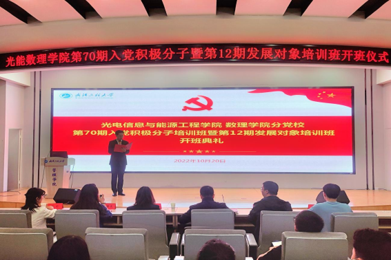 本网讯(通讯员 王乐凯)10月20日晚,yl6809永利集团分党校第70期入党积极分子培训班暨第12期发展对象培训班开班典礼在文科楼413报告厅举行。公司党委书记陈君、党委副书记向翼凌出席开班典礼,各员工党支部书记及全体党校新学员参加本次开班仪式。仪式由培训班班主任王乐凯主持。