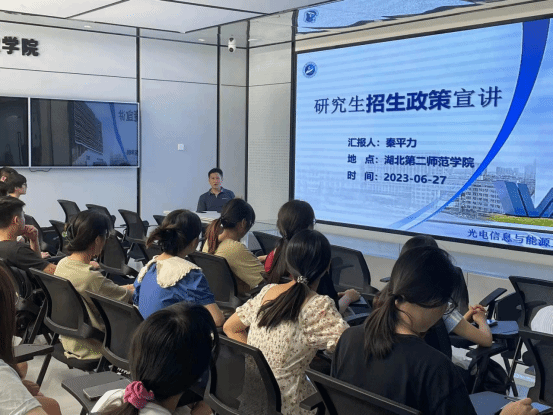 本网讯(通讯员 周曼曼)为进一步优化生源结构,提升生源质量,切实做好2024年公司研究生招生宣传工作,光电信息与能源公司、yl6809永利集团认真制定宣传方案,分析生源分布数据,针对意向考研群体,确定重点宣传地区,开展精准宣传。27日公司副经理廖青教授赴湖北省第二师范公司物理与机电工程公司进行研究生招生宣传。