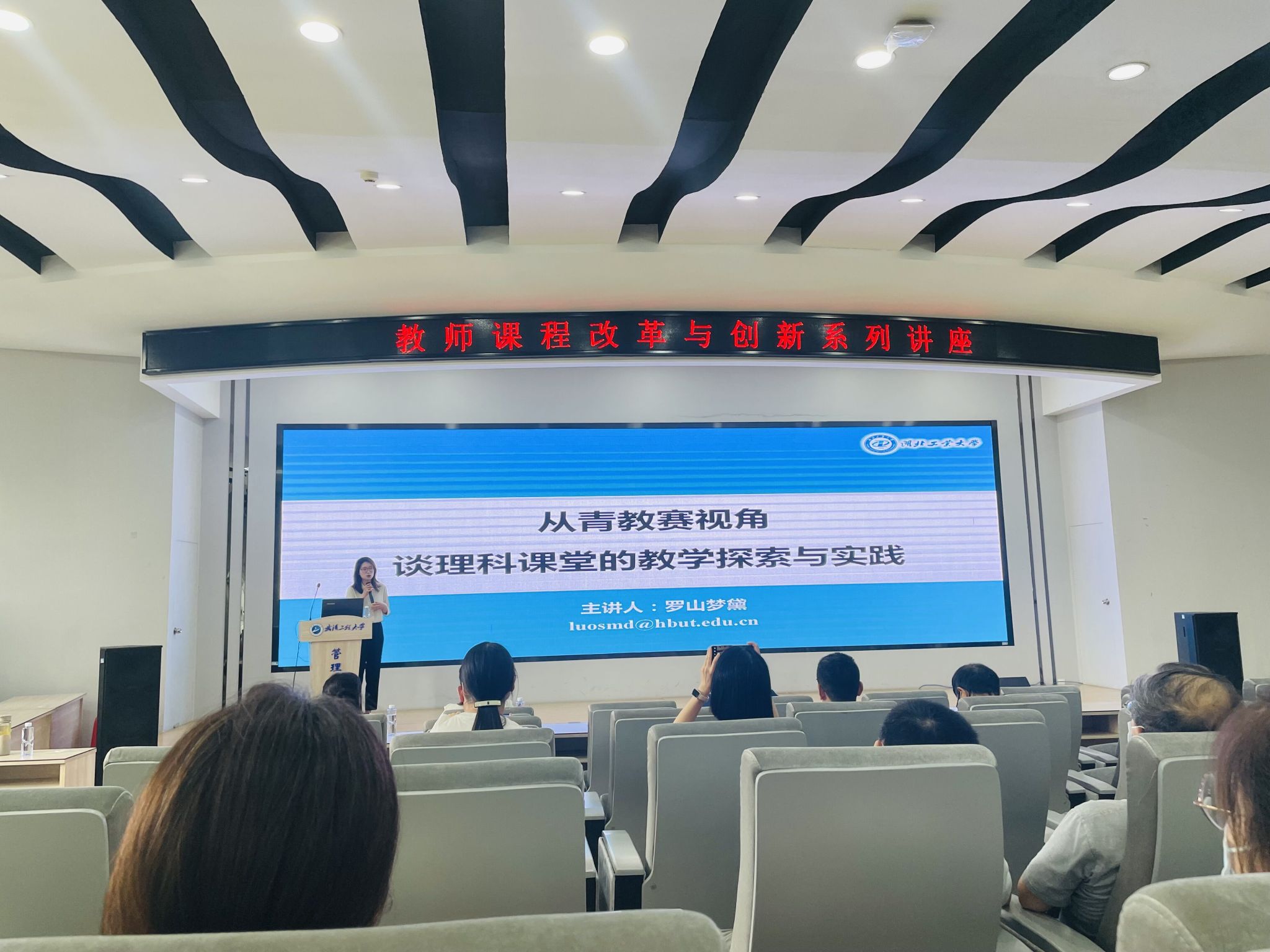 本网讯(通讯员 余子洋 段骞)2023年6月15日下午,由公司教师发展中心主办,yl6809永利集团承办的教师课程改革与创新系列讲座在文科楼413报告厅举行。湖北工业大学理公司(芯片产业公司)副教授罗山梦黛作题为“从青教赛视角谈理科课堂的教学探索与实践”的报告讲座,此次讲座由公司副经理李圆媛主持,公司全体教师参加。