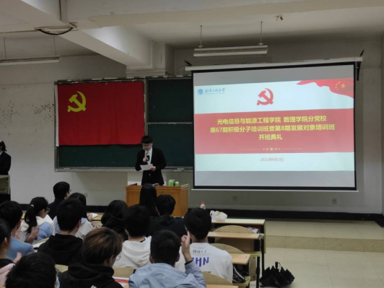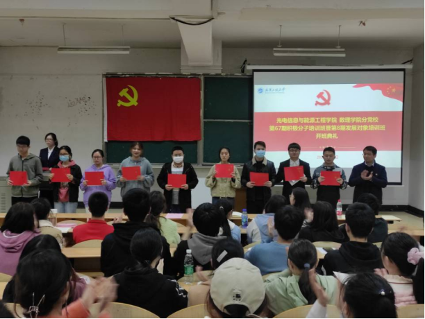 在庄严肃穆的国际歌声中,本次培训班开班典礼拉开帷幕。陈君书记宣读了第66期积极分子培训班优秀学员名单,并为优秀学员颁发证书与奖品并合影留念,他寄语本期培训班的学员们要向66期的优秀学员学习,现场掌声经久不息。