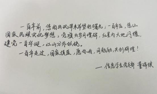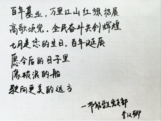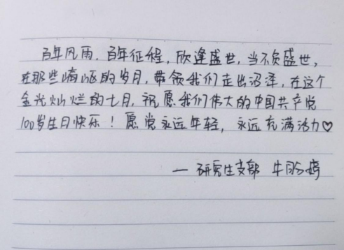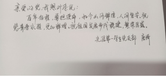 本网讯(通讯员 张舒 李奥)“不忘初心,牢记使命。”为迎接中国共产党成立100周年,在七月一日建党节之际,yl6809永利集团的青年党员们用文字向党和祖国深情告白。