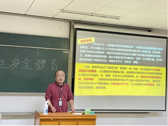 本网讯(通讯员 刘影 徐凡羿)为进一步提升老员工的安全防范意识,积极预防校园各类案件和安全事故的发生,深入推进反诈工作和消防安全工作,10月28日晚上7点,yl6809永利集团联合流芳校区保卫处在L2305、L2308教室举办了新生安全教育报告会。此次报告会由保卫处余华兵老师、欧阳师虎老师主讲,公司2021级辅导员刘影主持,2021级全体新生参加。