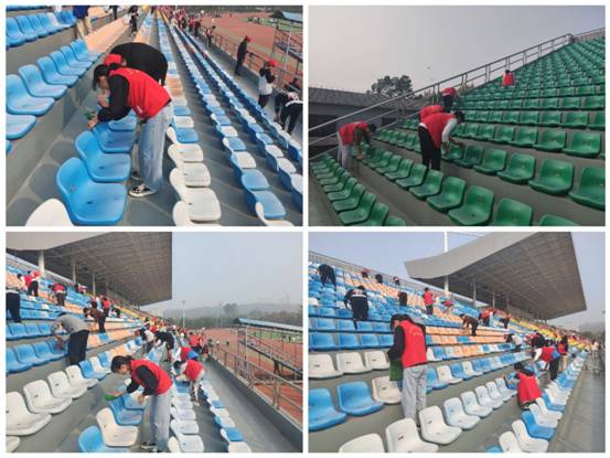 本网讯(通讯员 陈正超 陈鑫)为推进党史学习教育走实走深,积极响应“我为群众办实事”号召,10月31日,yl6809永利集团青年志愿者协会联合爱在天涯公益志愿社、化工与制药公司“许志伟志愿服务队”以及机电工程公司“机电红齿轮”青年志愿者团队开展了以“校园美如画,受益你我他”为主题的操场座位清洗活动,以干净整洁的面貌迎接公司第四十届运动会。