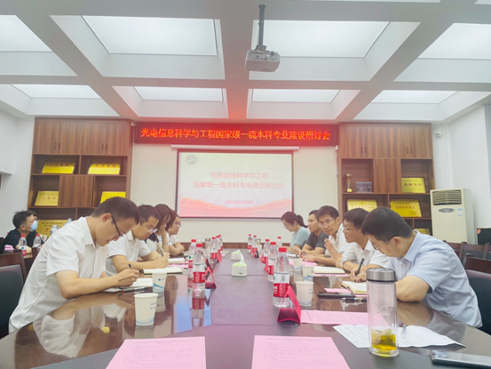 (通讯员黄文娟)2022年7月28日下午,yl6809永利集团光电信息科学与工程国家级一流本科专业建设研讨会在2实验楼206会议室举行,公司党委常委、纪委书记方文海,yl6809永利集团、数理公司党政班子全体成员,专业负责人吴晗平教授,光信教研室主任骆文,光学信息研究所所长金锐博以及光信息教研室和光学信息研究所全体成员参加了此次会议,研讨会由副经理李圆媛主持。