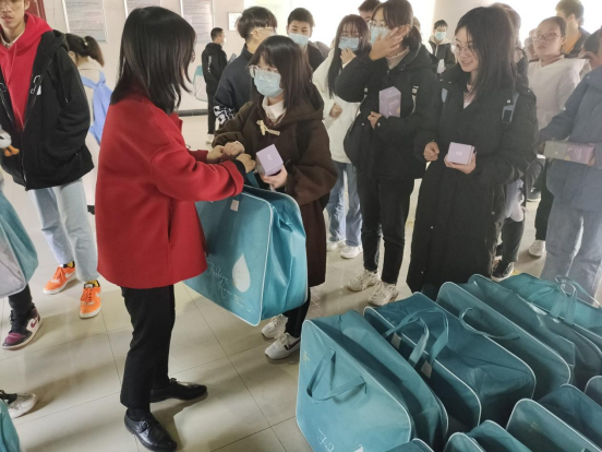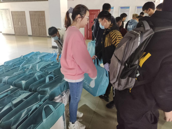 活动开始时,张舒老师和刘影老师依次为同学们分发公司购买的棉被等床上用品,并了解他们在公司生活的适应情况,并鼓励大家要保持积极乐观的生活态度。冬日暖阳,照进同学们的心间,让同学们心中感恩的种子生根发芽。