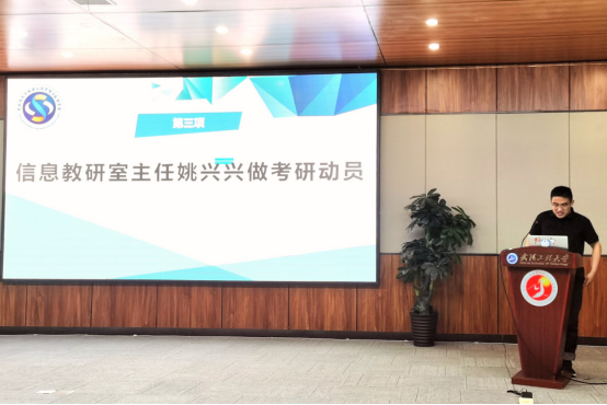 接下来,由信息教研室主任姚兴兴和大数据教研室主任闫艳进行考研动员。姚兴兴提出要明确自己想要“得到什么”,应该“做什么”,并希望同学们在准备考研时要有详细的计划,同时要调整好心态,下决心,有耐心、恒心和信心。闫艳分析了考研人数上升的情况及原因,指出了考研时存在的困难及相关解决方法。