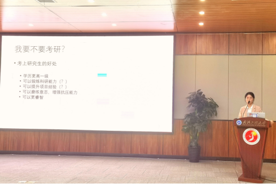 随后,由信息教研室戴祖旭教授和2019级大数据2班班主任罗庆老师进行了分享。戴教授以实际例子指出考研择校的重要性,要根据自身实际情况选择适合自己的公司;罗庆指出了研究生学历将是自己一生的财富,同时还强调了“知己知彼,量力而行”。