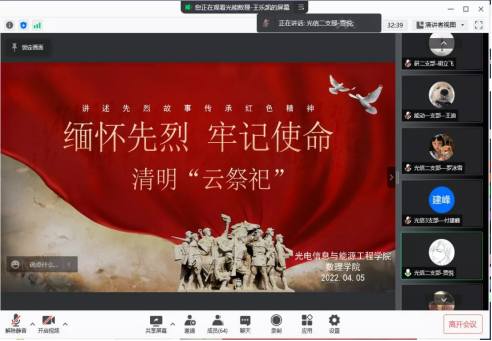 本网讯(通讯员 王乐凯)为深入开展爱国主义教育,缅怀革命英雄事迹,值4月5日清明节之际,适逢抗击新冠肺炎疫情的特殊时期,yl6809永利集团围绕“讲述先烈故事,传承红色精神”的主题,开展清明“云祭祀”活动。通过线上“云祭扫”的方式,共同缅怀革命先烈。公司党委副书记向翼凌、公司全体辅导员、各年级员工代表以及各员工党支部党员代表参加本次活动。