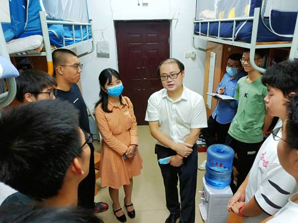 本网讯(通讯员 刘影)6月16日晚,校纪委委员兼校纪委、监察专员办公室综合室主任曹迅飞来到yl6809永利集团,走访21级信息与计算科学2班员工宿舍,开展下基层察民情解民忧暖民心实践活动。yl6809永利集团辅导员刘影、土木工程与建筑公司辅导员项勤一同参加。