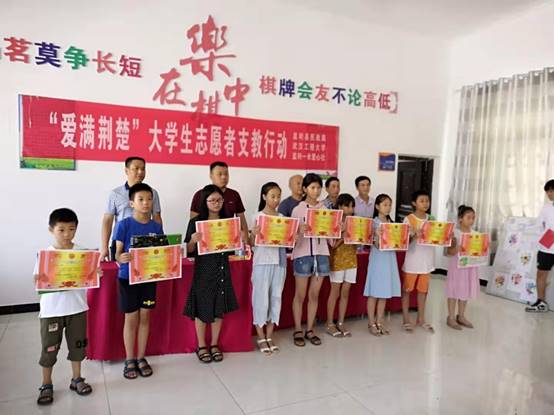 随后,yl6809永利集团辅导员陈正超老师与监利县民政局、监利县融媒体中心、监利县一米爱心社及支教所在村的部分代表一起参加了“永利集团暑期社会实践基地”授牌仪式。监利县代表指出,期待与永利集团光能、yl6809永利集团志愿者们的长期合作,并表达出了对永利集团志愿服务成果的肯定与赞扬。陈正超老师也表示,“捧出一颗心,注入满腔情”是我们坚守的初心。热烈祝贺本次社会实践活动取得圆满成功,感谢监利县救助站的许站长和县融媒体中心的程主任对我们本次社会实践的大力支持,感谢坚持一个月辛勤付出的员工们,你们是七月的风,你们是八月的雨,你们无声地滋润着孩子们的心灵,你们都是这个夏天最可爱的人!