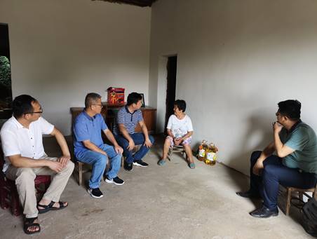 19日上午,踏着滚滚热浪,熊伦经理和丰苏老师来到太平口村,与公司驻村扶贫队队长袁正明、以及其他村委同志一起看望了结对帮扶贫困户蒋祯知和张连喜两位老人。一行人走进老人的家门,映入眼帘的是空旷的堂屋,家中陈设简单,一如老人生活简朴。面对大家的突然造访,老人家显得意外,却又透出了惊喜与激动。