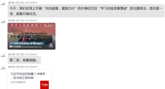 公司分两次召开研究生线上主题班会活动。3月2日上午9时,yl6809永利集团全体研究生在公司、班主任、班委的组织下,开展了以“共抗疫情,爱国力行”为主题的线上学习班会。班会上全体研究生观看“2020年元旦天安门升旗仪式”;观看并学习“习近平讲述的故事---冲锋号,在决战之地吹响”; 学习贯彻落实《新时代爱国主义教育实施纲要》、《教育系统关于学习宣传贯彻落实<新时代爱国主义教育实施纲领>的工作方案》;学习抗疫英雄事迹,最后分别发表了自己的观点。