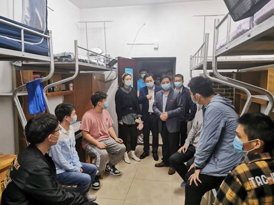 (通讯员 陈正超 包存又)9月25日晚,公司党委书记程幼金一行深入2020级新生宿舍看望新生,来到教辅5号楼宿舍时,亲切看望了公司新生并与他们亲切交流。