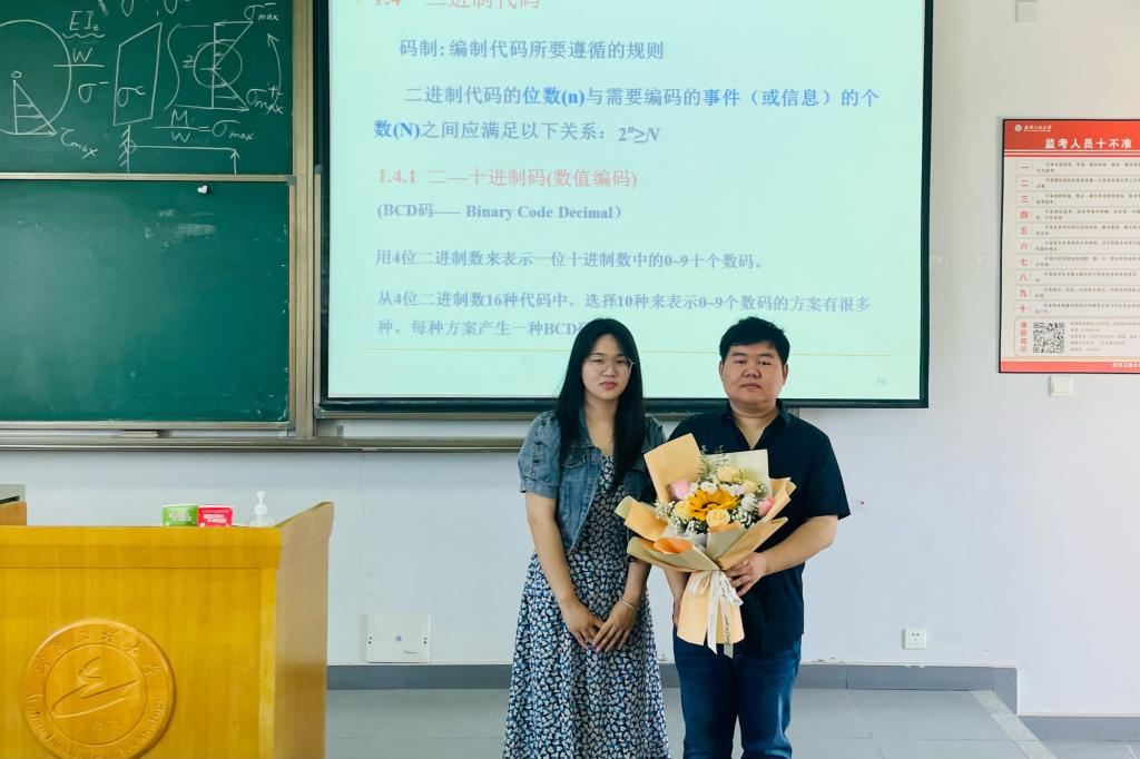 仪式上,副经理李圆媛首先向同学们介绍了吴浩煜老师的学术背景和基本情况,吴浩煜老师是公司2021年从华中科技大学引进的优秀博士后,曾主持国家自然科学基金青年项目和中国博士后科学基金面上项目,在国内外权威学术期刊上发表多篇SCI论文,是一位才华横溢的学霸老师。接着员工代表上台向吴老师献上鲜花,一束鲜花代表了一份祝福,也代表了一份期望。最后李圆媛寄语吴老师落实好“立德树人”根本任务,时刻牢记“为党育人、为国育才”的使命,潜心教书育人,早日成长为公司的骨干教师。